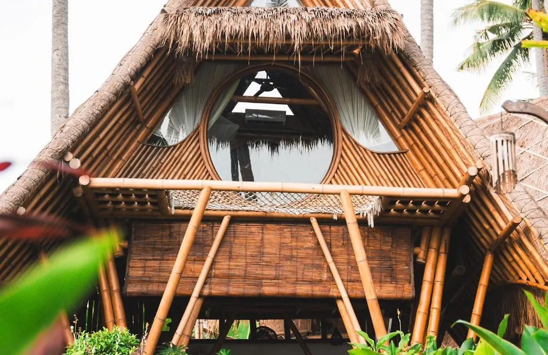 Ontspan in de tuin van Batu Kayu Medewi Hotel, waar een balkon bijdragen aan de schilderachtige schoonheid.
